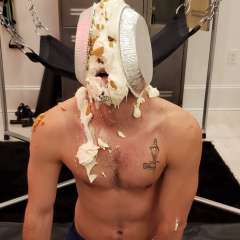 RubberPie had a giant chocolate cake smooshed in his face by PiedTargets
