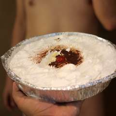 Gungejock had a sloppy pie dumped all over his head by Mudfunfan